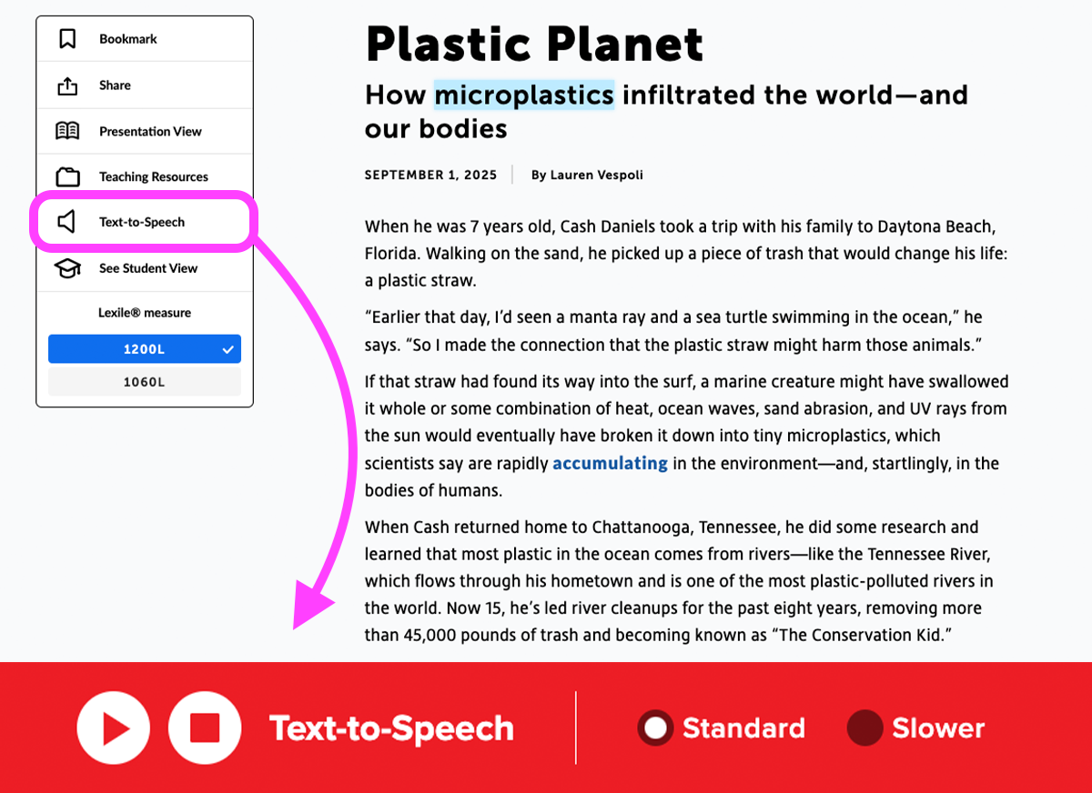 *Note: You can also click on any word in the article to start Text-to-Speech from that point.