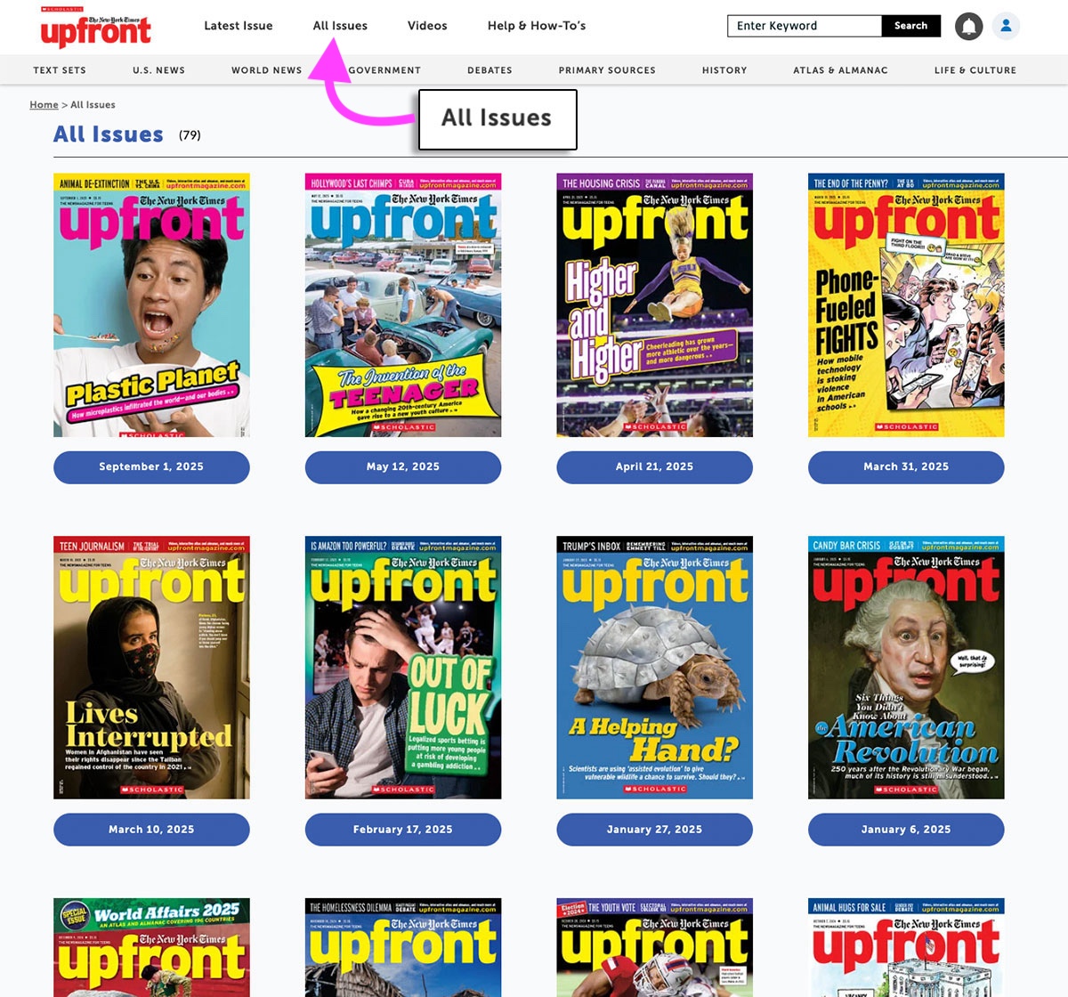 Want to replay one of your students’ favorite videos? Looking for that older article that was a perfect fit for this year’s curriculum? Use our easy-to-search Archives to find articles, videos, skill-building worksheets, and other online resources from the current and previous school years.